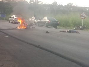 O acidente ocorreu por volta das 15h30, e testemunhas enviaram algumas fotos para nossa redação e afirmaram que uma das motos chegou a explodir.