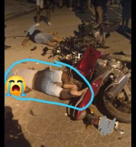 Duas motos colidiram de frente de forma brutal, sendo o total de três pessoas as envolvidas no acidente.