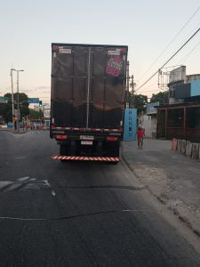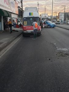 Ao tentar freiar, uma van que esrava vindo atrás, bateu na traseira da carreta, o motorista da van, sofreu um corte na testa.