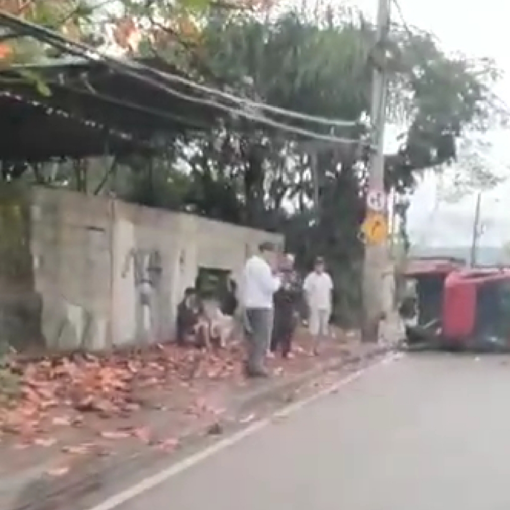 Um carro capotou agora pouco na estrada do Mato Alto pista sentido Campo Grande próximo a Fazenda Modelo.