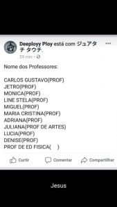 O suposto agressor enviou uma lista na qual constam nomes de vários professores do colégio, o que deixou todos muito apreensivos. A história veio à tona após uma mãe entrar em contato com nossa redação informando que sua filha havia voltado para casa por conta da ameaça.