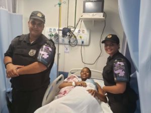 A PMESP Maria da Penha cumpria baseamento na Rua Mirandela com Av Getúlio Vargas, quando foi acionada pela senhora Juliana Taís e seu companheiro. Juliana estava em trabalho de parto e o bebê estava sufocado pelo cordão umbilical enrolado no pescoço, sendo assim a CB PM Suellen retirou o cordão umbilical do pescoço do bebê e verificou a sua respiração, em seguida procedeu para o HMJK em Nilópolis, onde concluiu o socorro com êxito, por conta dos primeiros socorros prestados pela Patrulha Maria da Penha, e o bebê e a mamãe estão fora de perigo.