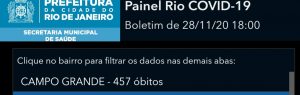 Já são 457 o número de óbitos confirmados de covid-19 em Campo Grande, o que faz com que o bairro ocupe a primeira colocação no ranking dos mais atingidos pela pandemia. Bangu vem logo atrás com 388, Realengo com 293 e Padre Miguel com 100 óbitos .