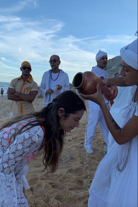 Durante as comemorações de ano novo, a jornalista e apresentadora Patrícia Poeta recebeu uma bênção de Iemanjá, em um ritual realizado em Trancoso.