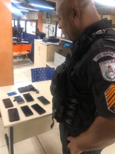 (7) elementos foram detidos, com sete (7) aparelhos de telefone celular, segundo os acusados os telefones foram furtados em um bloco de carnaval na região