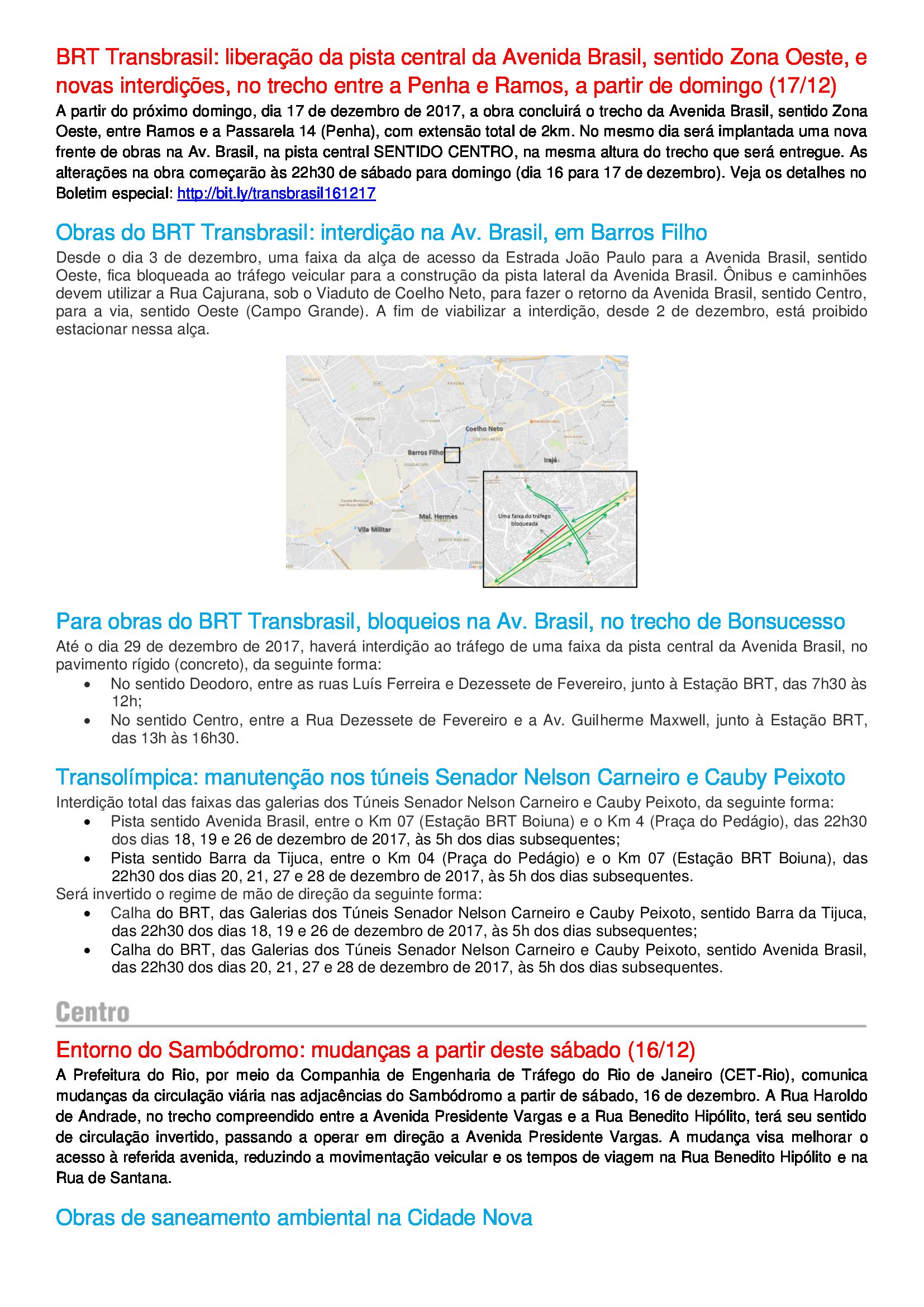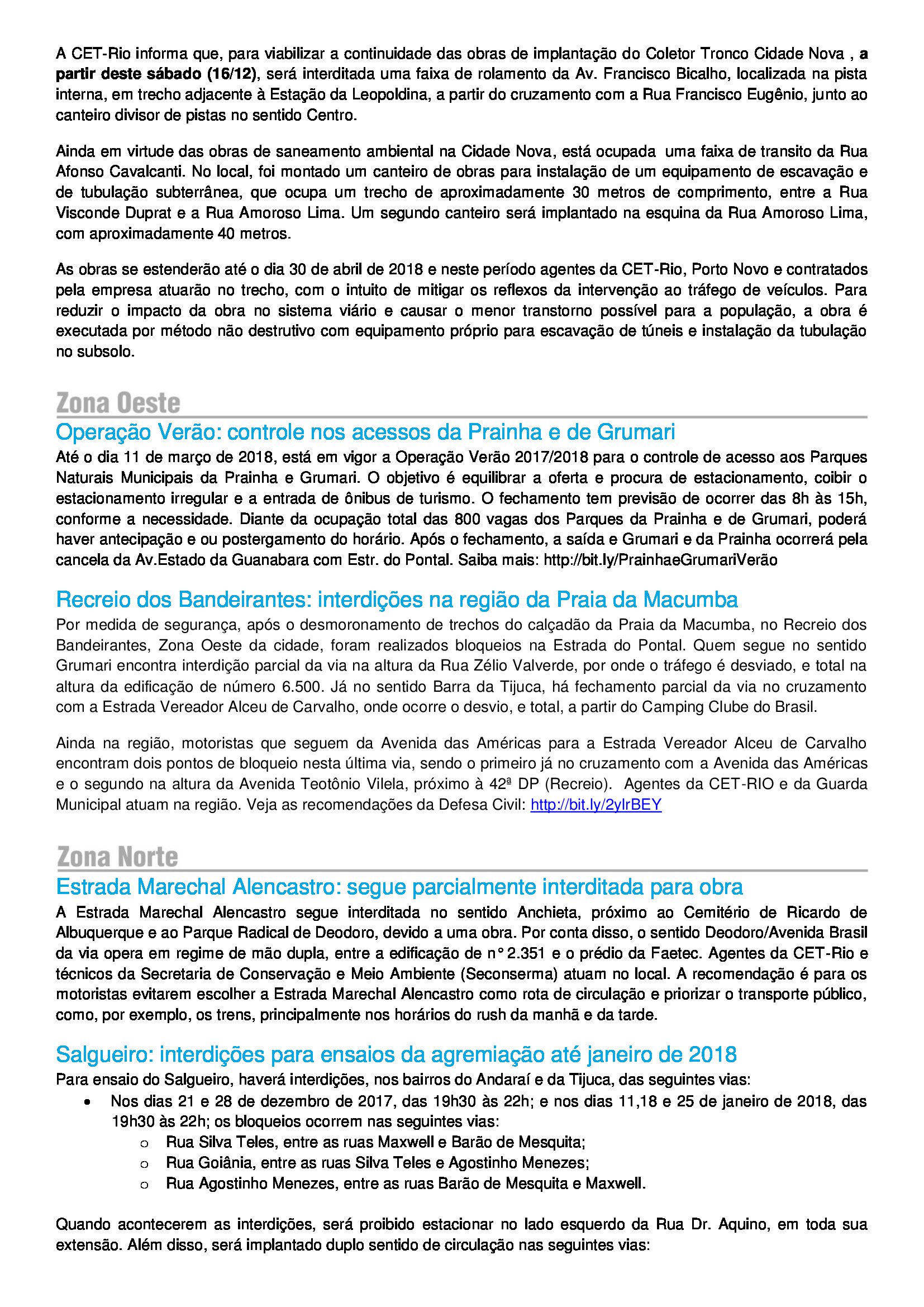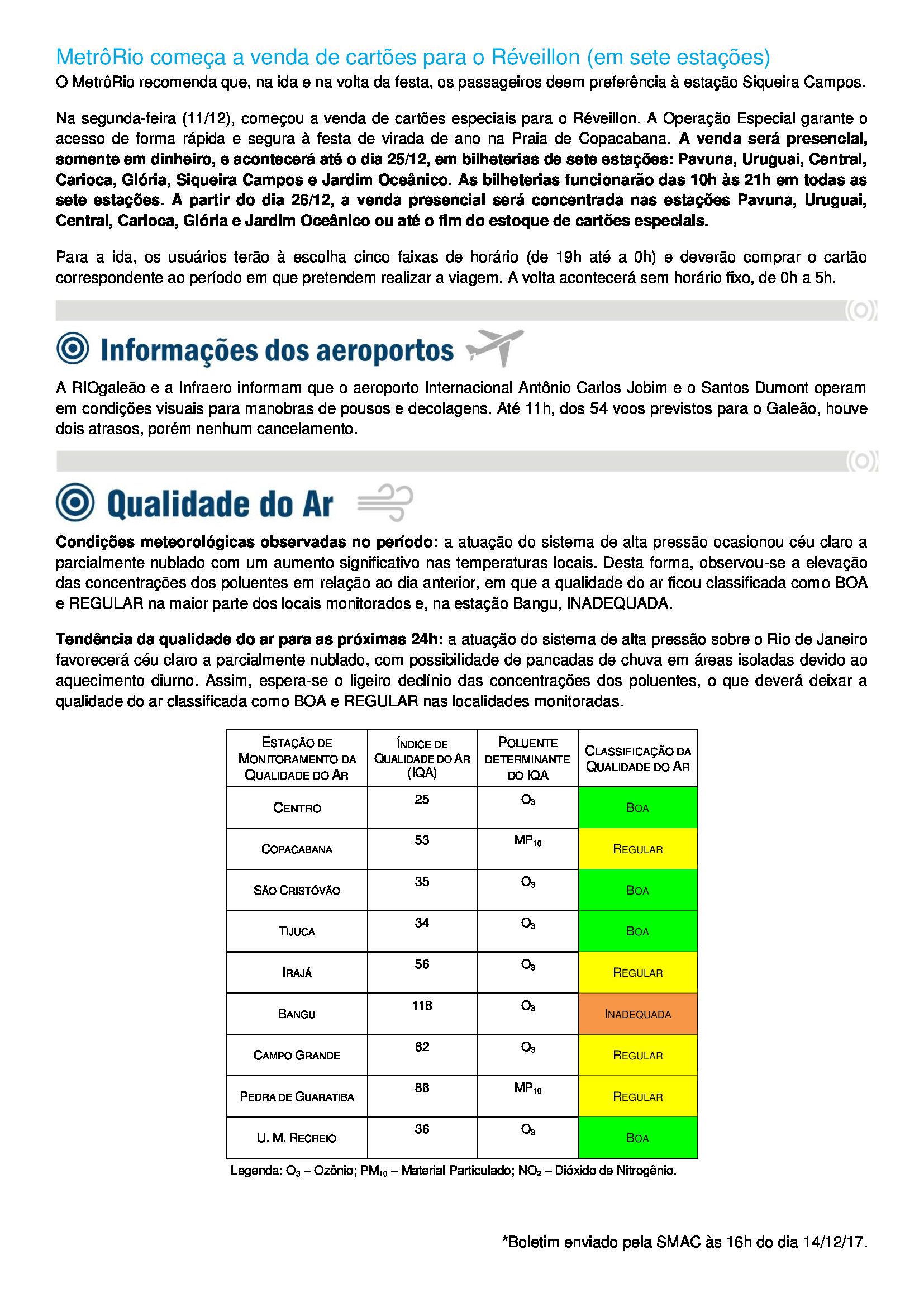 ATENÇÃO! BOLETIM DO CENTRO DE OPERAÇÕES RIO