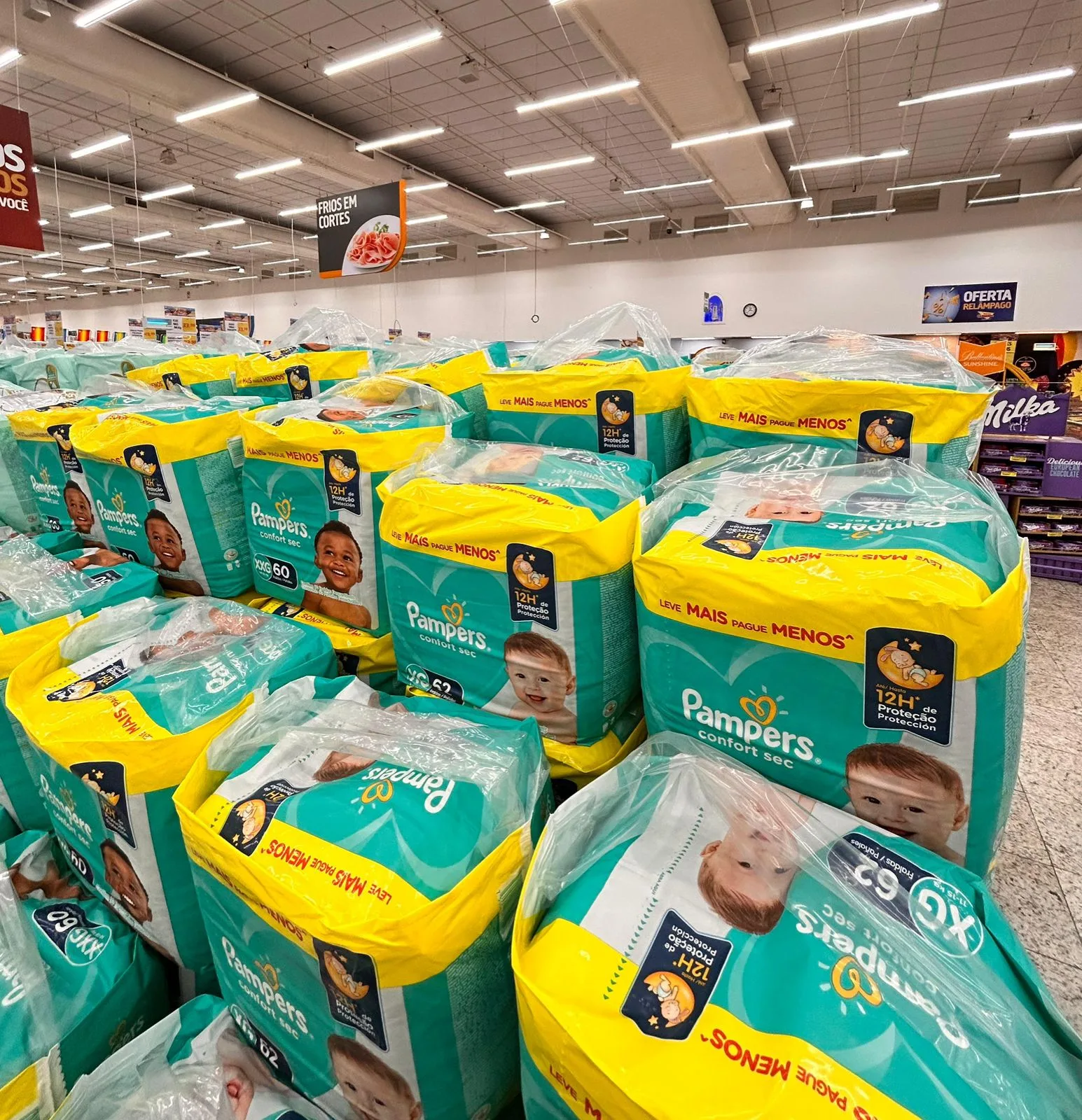 * 12 milhões de pacotes de fraldas descartáveis
