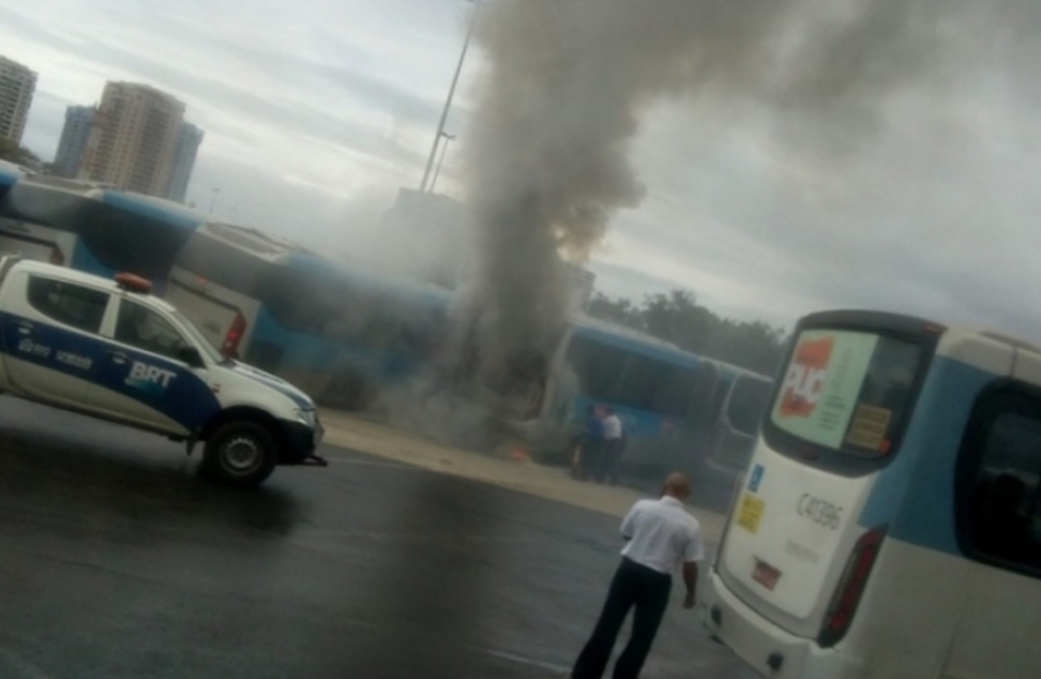 Um BRT pegou fogo no Terminal Alvorada, na Barra da Tijuca, na Zona Oeste do Rio, na manhã desta quinta-feira. O veículo articulado estava em um local destinado ao estacionamento quando começou o incêndio. Ninguém ficou ferido. Ainda não há informações sobre as causas das chamas.