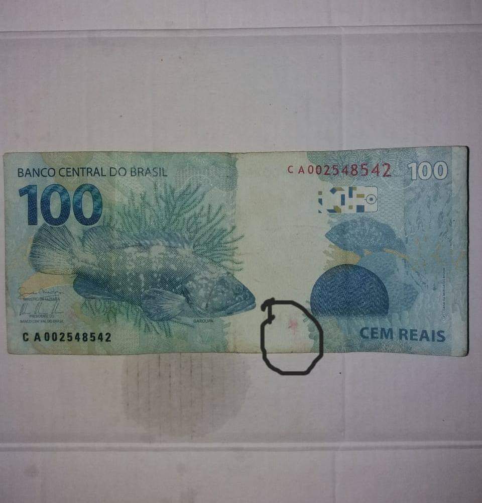 Se receber em outras circunstâncias, como no comércio, deve entregar a cédula em uma agência bancária. O banco anotará seus dados (nome, endereço, CPF ou CNPJ no caso de ser empresa) e enviará a nota para análise no BC. Se ficar comprovado que a mancha não foi provocada por mecanismo antifurto, a pessoa será ressarcida pelo banco. Caso a mancha seja desse tipo de dispositivo, não haverá reembolso. Em caso de dúvidas, consulte o site do BC (www.bcb.gov.br) ou ligue para 0800 979 2345.