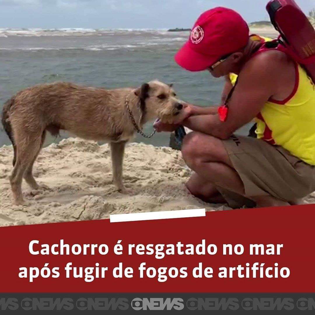 Em Imbé, no litoral do Rio Grande do Sul, um cachorro foi resgatado no mar fugindo do barulho dos explosivos. Ele tem apenas três patas e foi arrastado pela correnteza assim que entrou na água. Os bombeiros correram para socorrê-lo e conseguiram salvar a vida do animalzinho 🐶 Por enquanto, ele não tem nome e está na casa do bombeiro que o resgatou, mas já tem muita gente querendo adotá-lo 😍