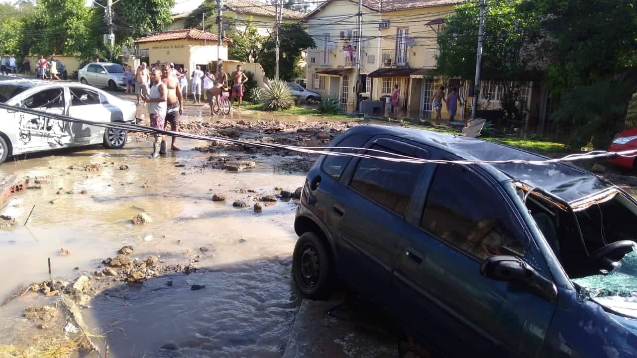 Uma tubulação da Cedae rompeu e causou um grande alagamento, nesta quarta-feira, na Estrada do Mendanha, próximo ao número 1672, em Campo Grande, na Zona Oeste do Rio. Carros teriam sido destruídos e vias no entorno foram tomadas pela água, que formou um grande ‘chafariz’ no local do incidente.