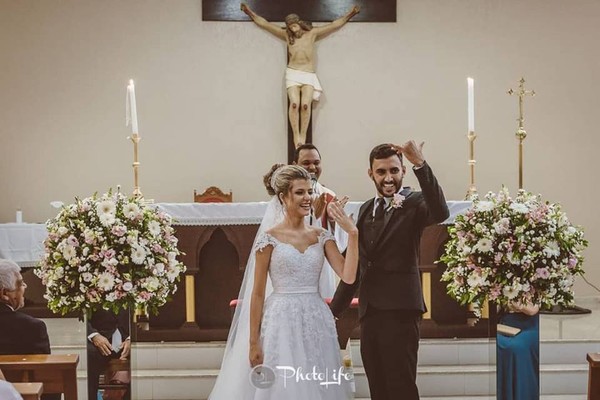 Ana Paula e Victor na cerimônia religiosa de casamento — Foto: PhotoLife