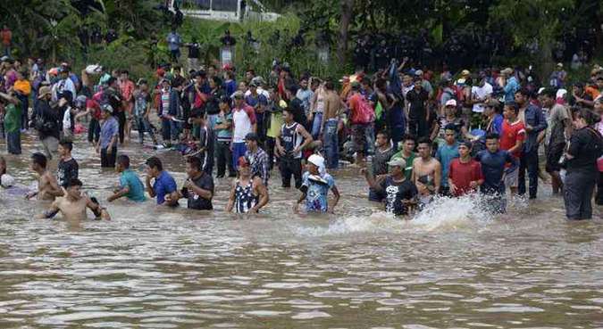 Centenas de migrantes hondurenhos se atiraram nesta segunda-feira (29) no caudaloso rio fronteiriço entre Guatemala e México para entrar em território mexicano, diante a blindagem da fronteira terrestre, e poder assim seguir a pé sua travessia rumo aos Estados Unidos, constatou a AFP.