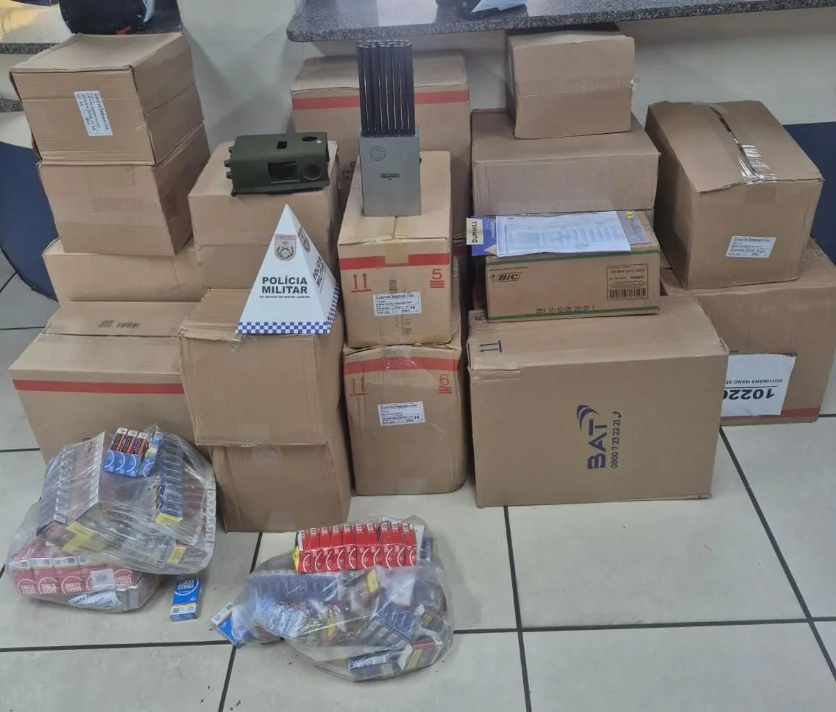 Durante a ocorrência, a PM apreendeu diversas caixas de cigarros — ainda em processo de contagem — além de dois veículos utilizados pelo grupo: um Fiat Fiorino branco, placa SYE-0961 (MG), e um Ford Ka Sedan branco, placa QUO-3162 (MG). Também foi encontrado um bloqueador de sinal, conhecido como “jammer”, equipamento frequentemente usado por quadrilhas para impedir o rastreamento de cargas e veículos roubados.