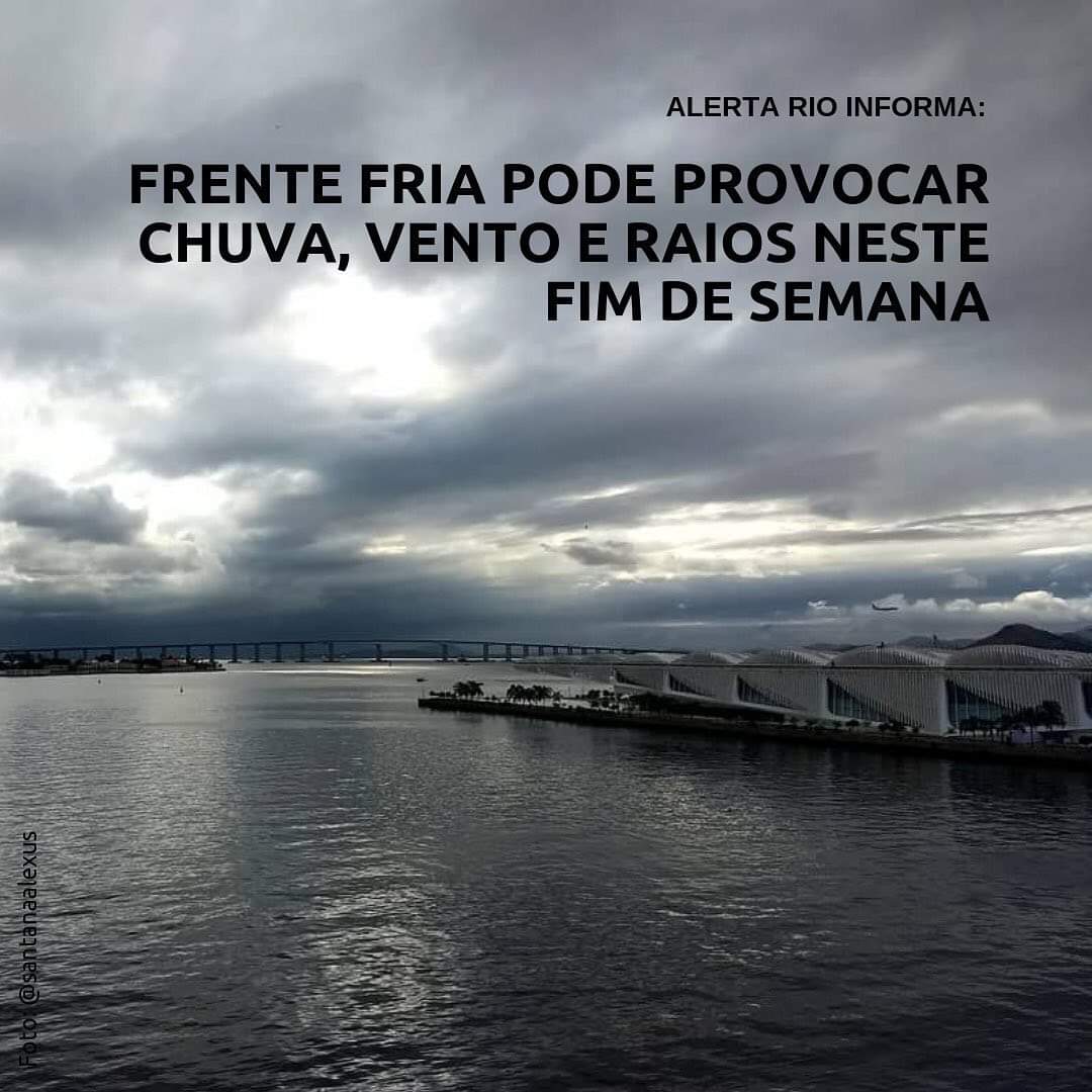 O Alerta Rio informa que Neste sábado, a passagem de uma frente fria mudará o tempo na cidade do Rio de Janeiro. Assim, a previsão é de céu nublado a encoberto com chuva fraca a moderada ao longo de todo o dia. Os ventos estarão moderados a fortes e as temperaturas apresentarão acentuado declínio em relação ao dia anterior, com máxima de 24°C, que deverá ocorrer no início da madrugada e mínima de 14°C no fim do dia.