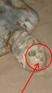O corpo estava em estado de decomposição, porém, percebe-se que é um corpo de um homem e tem uma tatuagem no braço com o nome de Lucia.