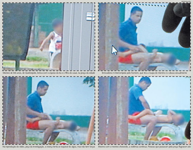 “O vídeo que comprova o abuso tem cerca de dois minutos, mas o crime, segundo a pessoa que fez as imagens, deve ter durado aproximadamente 10 minutos. A praça estava vazia e talvez, por isso, ele se sentiu livre para fazer o ato. No local só havia o Weverson, o garotinho abusado, além do filho de dois anos do suspeito, que pode ser visto em alguns momentos da filmagem”, explicou Tadeu.