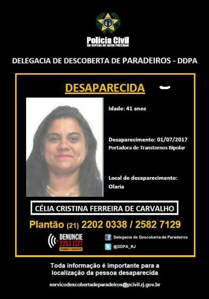 Galera, muitos não sabem mas agora mais do que nunca preciso da ajuda de todos. Essa é minha mãe, após uma grave depressão ela desencadeou diversos problemas psicológicos. Estava no meio de um tratamento quando simplesmente pulou o muro de casa e fugiu no sábado (01/07/2017). O telefone está desligado e não temos mais nenhuma informação de onde ela possa estar, estamos apenas de mãos atadas e desesperadas sem saber o que fazer. Amigos por favor compartilhem essa imagem e nos ajudem, qualquer informação podem entrar em contato pelos telefones 998258445 (Moniza) / 973181416 (Dienne) / 994526318 ou 986414245 (Dandara)