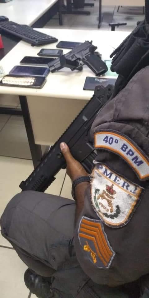 Na madrugada do dia (15), dois elementos foram presos por policiais do 40 BPM. Após realizar abordagem aos elementos na avenida Brasil, que estava em atitude suspeita, no interior do veículo foram encontrados 05 aparelhos celulares e 01 simulacro de Pistola. A ocorrência foi encaminhada 35.