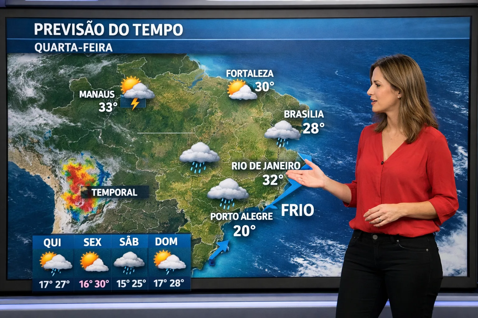 O céu deve variar entre nublado e parcialmente nublado, com aberturas momentâneas de sol que contribuem para a elevação das temperaturas. A previsão indica mínima de 20°C e máxima que pode chegar aos 37°C, mantendo a sensação de calor intenso em diversas regiões da capital fluminense. Esse contraste entre calor elevado e instabilidade atmosférica cria condições favoráveis para a formação de pancadas de chuva.