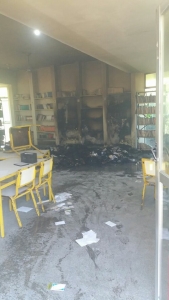 Vândalos incendiaram a biblioteca da escola e quebraram cadeiras e carteiras , bombeiros de Campo