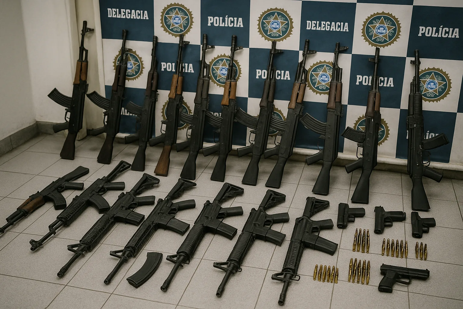 Um relatório recente da Subsecretaria de Inteligência da Polícia Militar do Rio de Janeiro acendeu um alerta preocupante sobre a origem do armamento pesado em circulação no estado. Dos 638 fuzis apreendidos somente em 2024 pelas forças de segurança, apenas 34 — o que representa 5,32% do total — foram fabricados no Brasil. Os outros 604, ou seja, mais de 94% das apreensões, têm origem estrangeira, revelando a força do tráfico internacional de armas que abastece o crime organizado no estado.