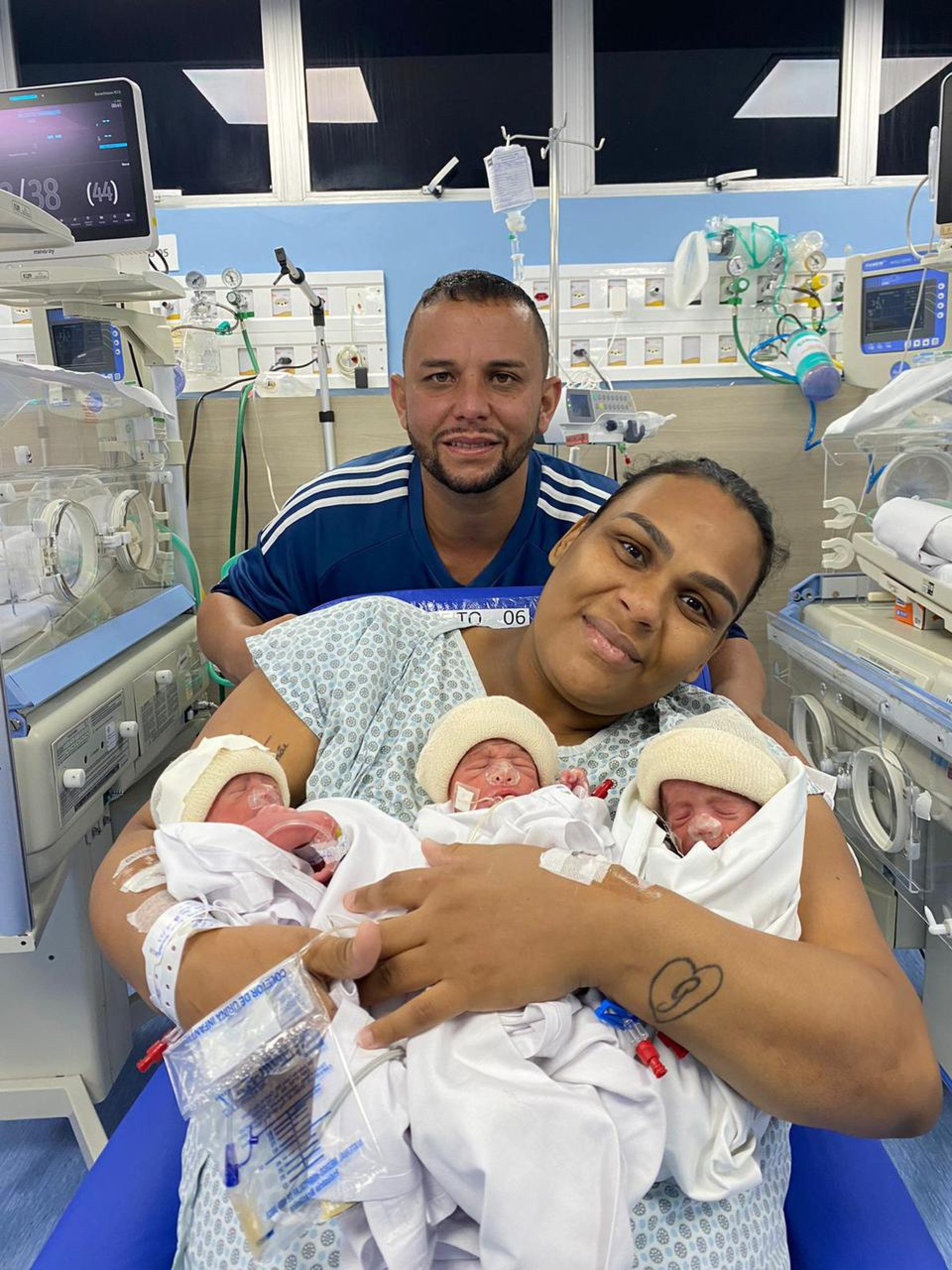 O Dia das Mães de 2023 é um momento triplamente especial para Rayanne Gomes Brandão, fiscal de caixa de 34 anos, e Alessandro Cunha Gomes, estoquista também de 34 anos. No sábado (13), à tarde, Rayanne deu à luz a três crianças no Hospital da Mulher Mariska Ribeiro, em Bangu, Zona Oeste do Rio de Janeiro.