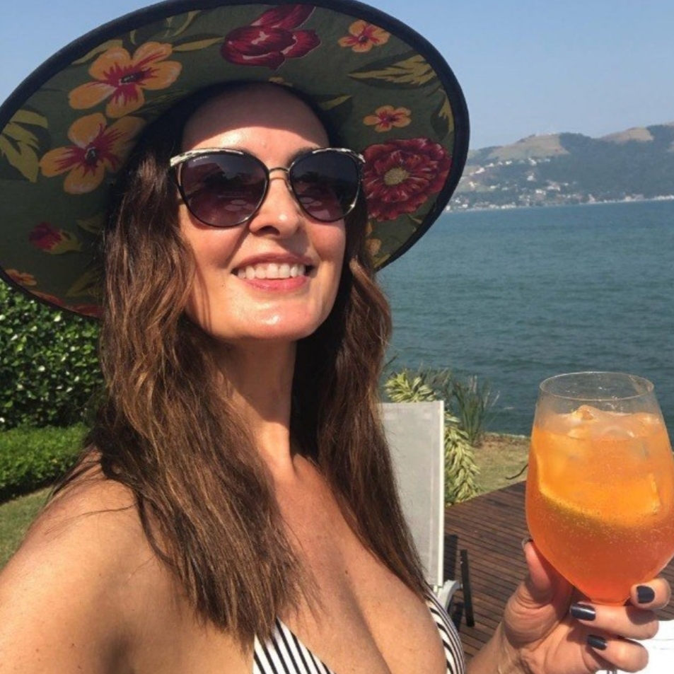 A apresentadora Fátima Bernardes está fazendo aniversário nesta quinta-feira (17). Completando 58 anos, a jornalista resolveu postar uma foto de um momento de folga, em que aparecer de biquíni, chapéu, com um drinque na mão e uma bela paisagem de fundo.