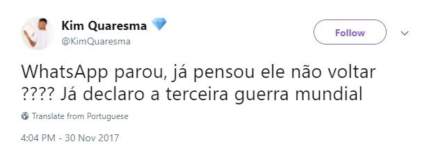 O WhatsApp está fora do ar na tarde desta quinta-feira (30/11). Nas redes sociais, usuários reclamam de instabilidade no aplicativo de mensagens instantâneas.