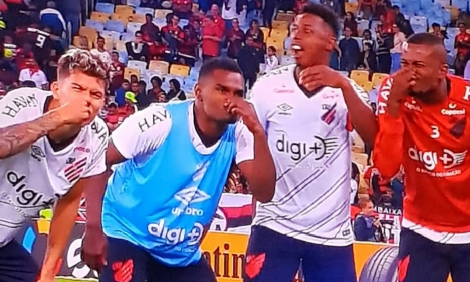 Após eliminarem o Flamengo da Copa do Brasil, nesta quarta-feira, no Maracanã, os jogadores do Athlético-PR zoaram os rubro-negros fazendo gestos do tradicional cheirinho. Veja a imagem abaixo.