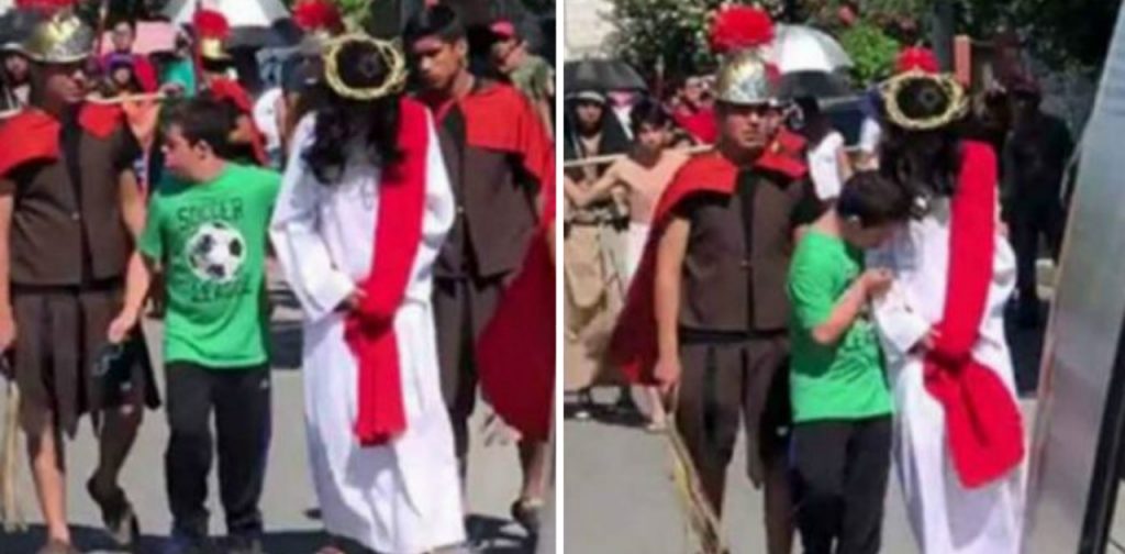 Um vídeo viral que rodou o mundo esta semana tem emocionado internautas ao mostrar o gesto genuíno de um garoto com síndrome de Down em abraçar um ator que interpretava Jesus Cristo durante uma Via Sacra especial realizada no México.