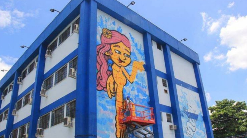 Um mural de grafitti desenhado na parede de uma escola em Bangu, zona oeste do Rio, tem rendido polêmica nas redes sociais. A arte, iniciada no dia 3 deste mês, tem mais de 200 metros quadrados e ocupa toda a extensão do prédio em um show de cores e traços. O projeto, denominado “O amor é a base da vida”, que acabou virando ponto cultural do bairro após a polêmica instalada, é do muralista e artista plástico Léo Shun e está localizado na Escola Estadual Collecchio. “A obra expressa o amor como base e isso se encaixa perfeitamente em um colégio onde o amor aos alunos, ao ensino e à educação são fundamentais para um ambiente onde o aprendizado está ligado à felicidade. Além disso, o amor é fundamental numa escola por ser um local onde as pessoas se relacionam em amizade, carinho, respeito e aprendizado”, disse Shun.