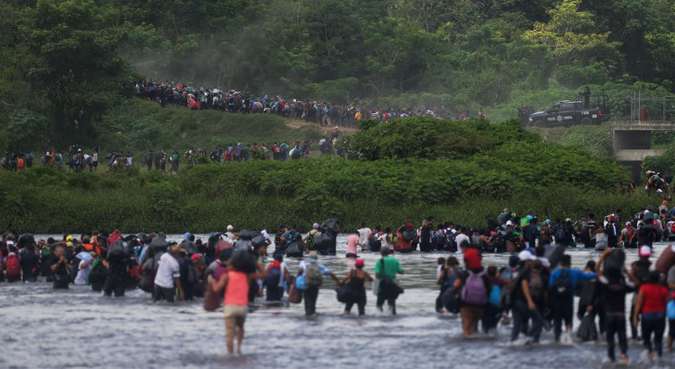 Uma caravana com 1.500 salvadorenhos que segue em direçăo aos Estados Unidos cruzou nesta sexta-feira o rio Suchiate, na fronteira entre Guatemala e México, constatou a AFP no local.