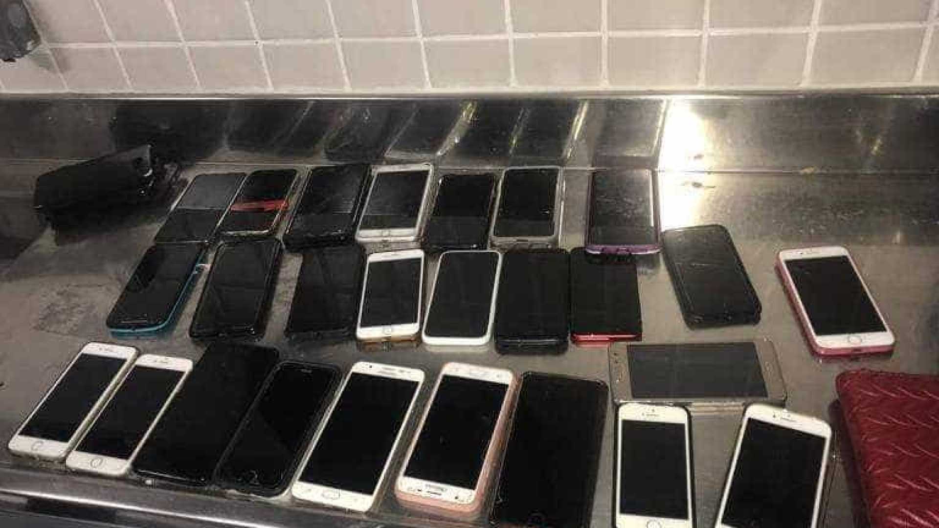 Por causa das mensagens, dezenas de aparelhos foram abandonados no chão do ginásio e nos banheiros pelos ladrões.