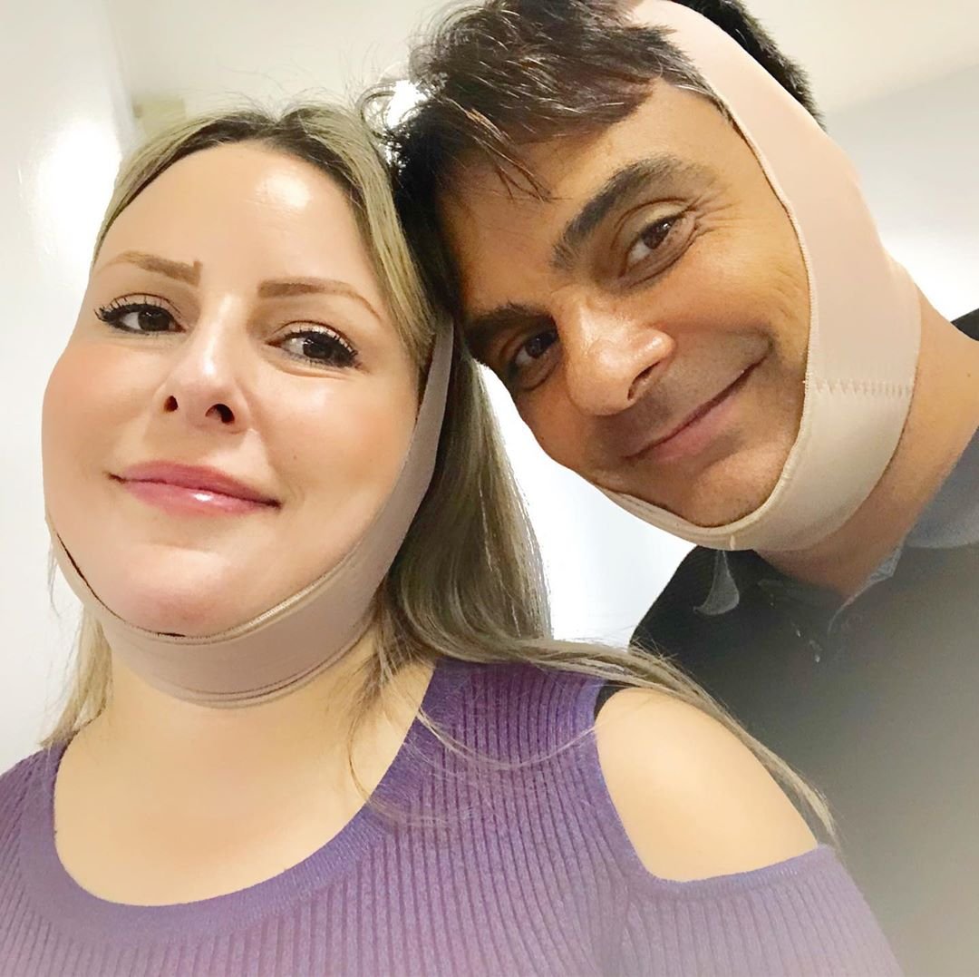 Segundo o ex-ator, que aparece na foto com uma espécie de faixa no rosto, eles passaram por uma lipoaspiração mecânica de papada. Questionado por um seguidor sobre o custo do procedimento, Guilherme afirmou que pagou apenas a anestesia, já que era “modelo do curso”, segundo informações do jornal Extra.