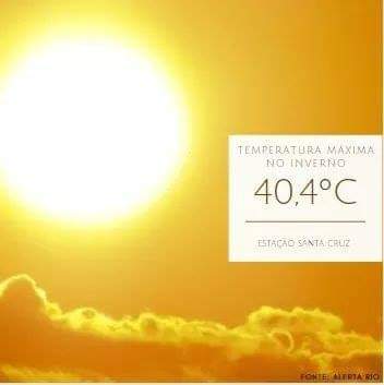 O Sistema Alerta Rio informa que a temperatura máxima registrada neste sábado, 12 de setembro, no Rio de Janeiro foi de 40,4°C, às 16h, em Santa Cruz. Dentre as estações do Alerta Rio, esta foi a maior temperatura máxima registrada no inverno de 2020 até o momento. Já que o inverno só termina em 22 de setembro e ainda há previsão de outros dias de calor até o final desta estação.