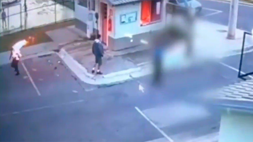 Com o corpo em chamas, a vítima corre tentando se livrar das labaredas; assista.