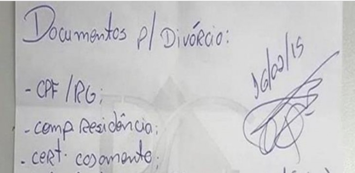 Em uma folha, Rafael Gonçalves solicitou alguns documentos para dar início à papelada, como é de praxe, mas foi além. Na mesma folha, o advogado fez alguns questionamentos tentando entender o porquê o casal queria terminar. Entre as perguntas, estava a de “eu fiz de tudo para salvar esse casamento?”.