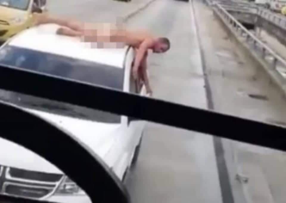 Um vídeo que mostra um homem pelado sobre um carro em movimento viralizou na web. O caso aconteceu em Barranquilla, na Colômbia, e chamou a atenção dos internautas.