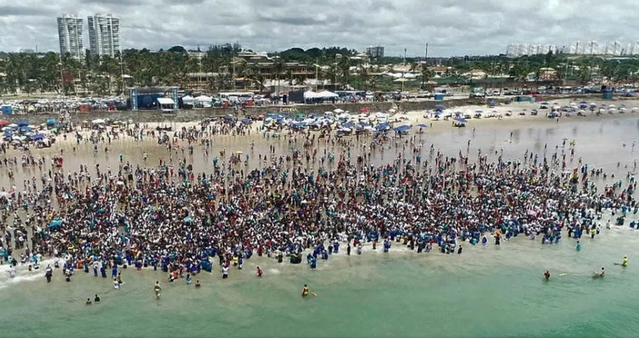 No último sábado (14) a Primeira Igreja Batista do Brasil reuniu dois mil evangélicos para um batismo coletivo, na praia de Jaguaribe, em Salvador, Bahia.