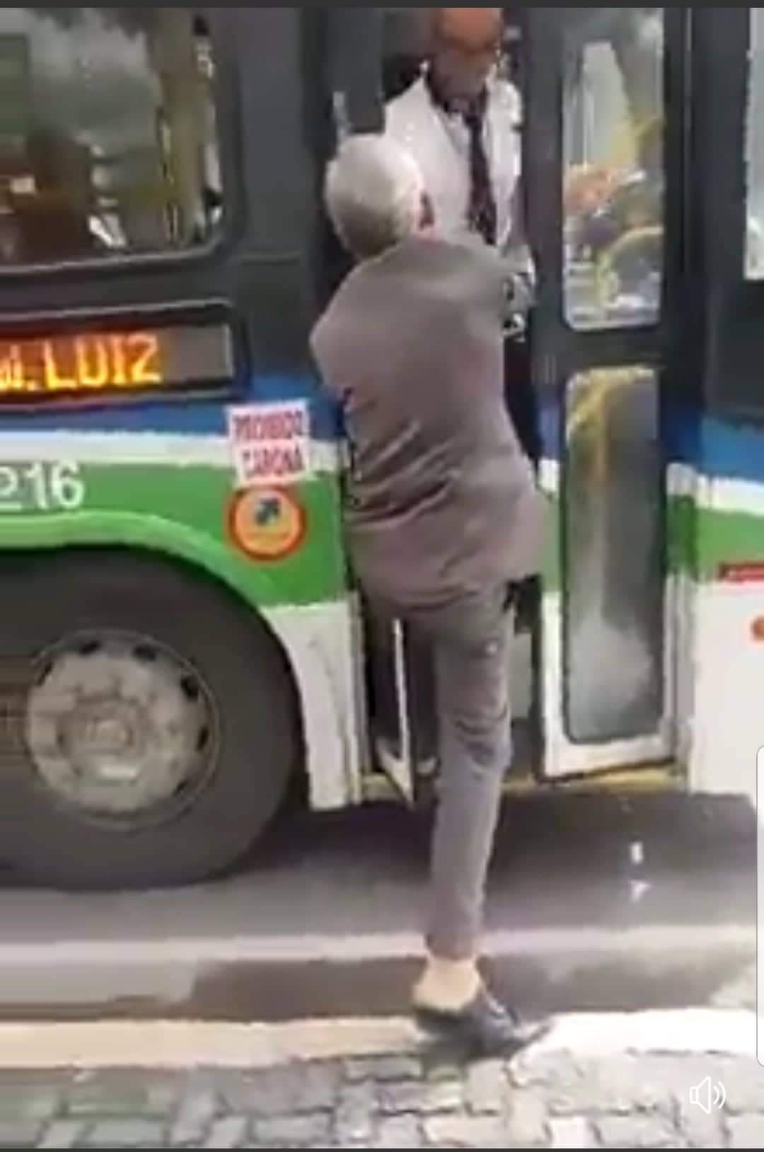 IMAGEM REVOLTANTE: IDOSO É AGREDIDO A CHUTES POR MOTORISTA E IMPEDIDO DE ENTRAR NO ÔNIBUS