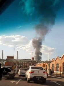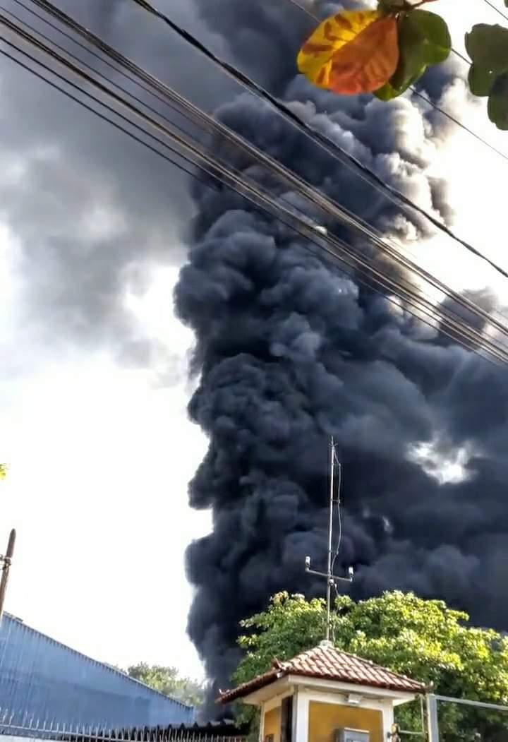 Segundo informações iniciais o fogo seria em uma fábrica de isopor próximo do motel Top-Kap.