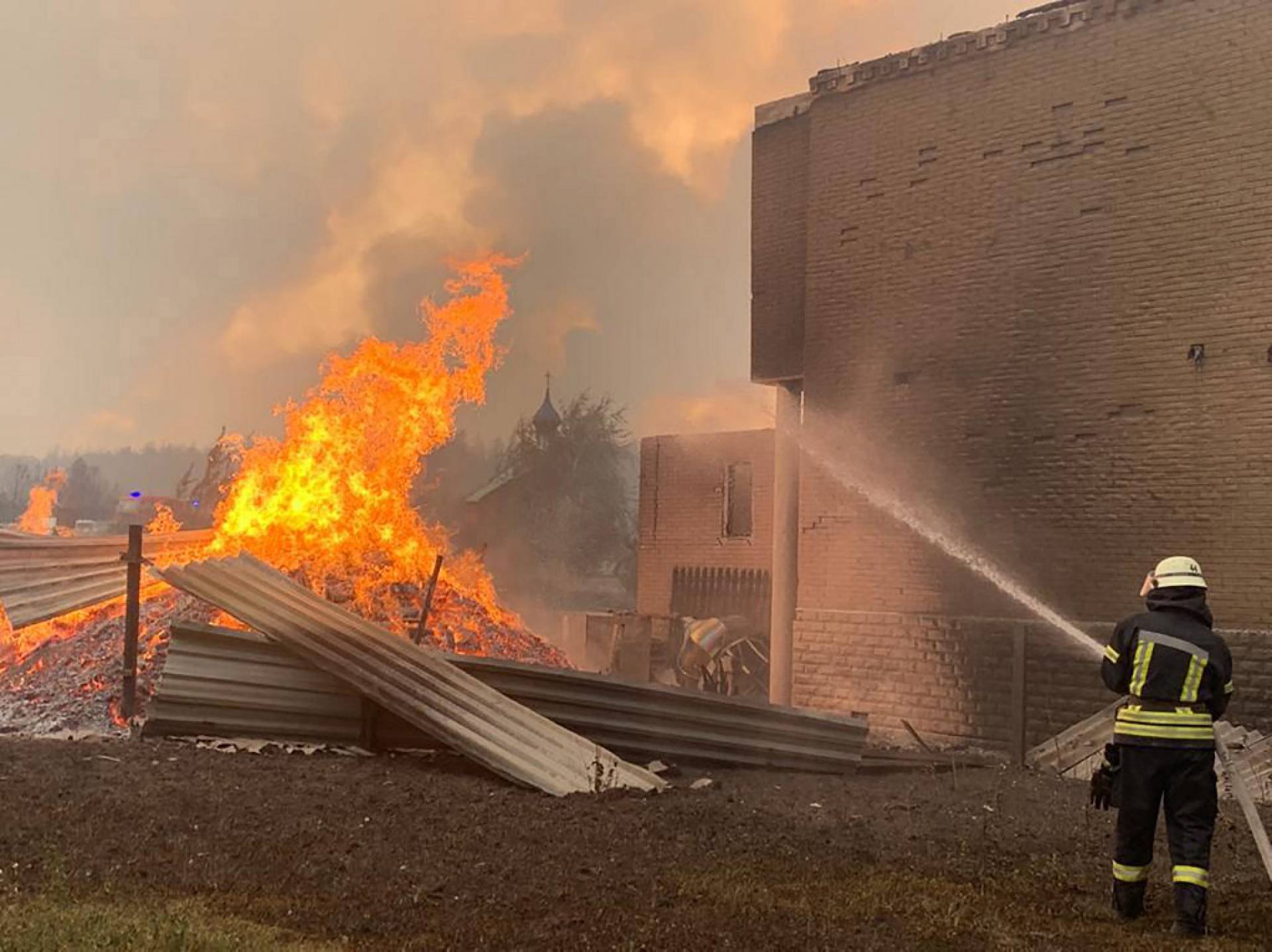 O incêndio se espalhou rapidamente na terça-feira devido a rajadas de vento e temperaturas de 38°C na cidade de Smolianynove.