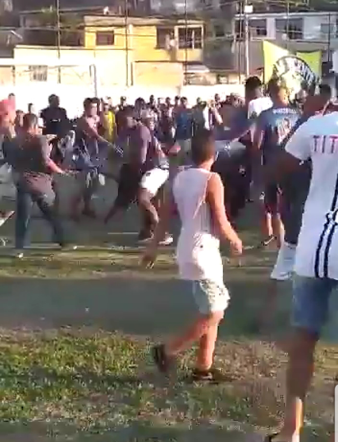 Uma partida de futebol amador terminou em pancadaria neste domingo, dia 02, em Belford Roxo, na Baixada Fluminense. O jogo seguia normalmente no campo do Vila Maia, no bairro Nova Aurora, quando a partida terminou e deu início a confusão. Até tiros foram disparados. Imagens da briga estão circulando pelas redes sociais.