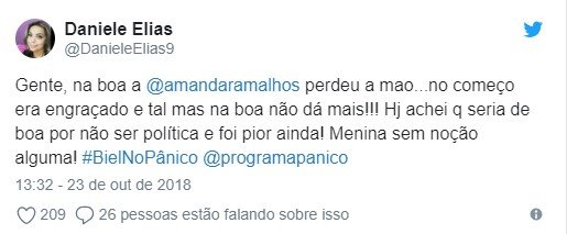 Após uma discussão ao vivo com o funkeiro Biel durante o programa Pânico, da Rádio Jovem Pan, a jornalista Amanda Ramalho pediu demissão. A confusão ocorreu nesta terça-feira (23/10), mas os desentendimentos entre os dois começaram em 2016.