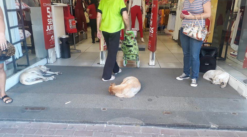 Pensando em ajudar os bichinhos, uma unidade da loja de departamentos Leader, em São Gonçalo (RJ), decidiu tomar uma atitude simples, mas muito significativa. Vendo o sofrimento dos cachorros de rua, os responsáveis pela loja decidiram abrir as portas para que os cachorros pudessem se resfriar lá.