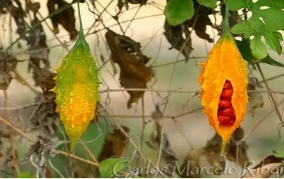 A planta é um vegetal comum da Ásia e que tem o nome de melão amargo (Momordica charantia – no Brasil, pode ser conhecido como melão-de-são-caetano), sendo popular na região de Okinawa, no Japão.