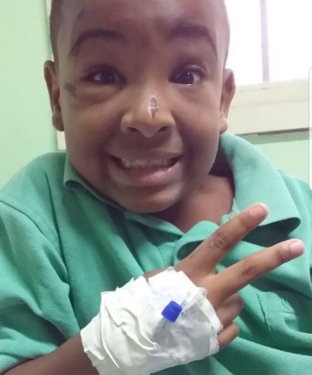 O pequeno Yuri, uma das crianças soterradas na casa que desabou na Vila Kennedy, que chegou a ficar em estado grave em coma, segue internado mas em estado estável agora.