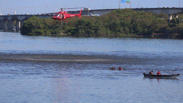 Em redes sociais circulam vídeos que mostram um outro helicóptero da PM sobrevoando o local da queda e também PMs que estavam no helicóptero que caiu na água, nadando. Outras imagens registram o momento em que um dos policiais é retirado de um a lancha por bombeiros e transportado numa maca.