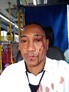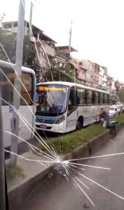 Ontem por volta das 17:00 um motorista de van agrediu covardemente o condutor do ônibus C13100 da Transportes Barra. O profissional que fazia a linha 878 em Rio das Pedras sofreu ferimentos no rosto”, relatou uma testemunha a Padre Miguel News.